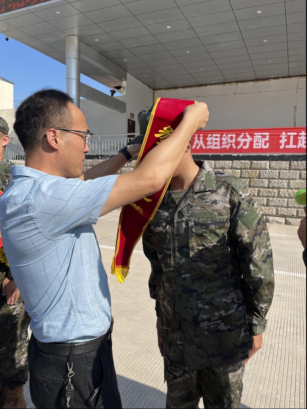 刘福琪书记向应征入伍大学生表示热烈祝贺,并为他们颁发荣誉证书和纪念品,他高度赞扬了入伍同学的政治素质和家国情怀,希望入伍同学到部队以后,时刻牢记“服从命令、听从指挥”,严格遵守部队的条令和各项规章制度;坚定不移听党话、跟党走,努力成为有灵魂、有本事、有血性、有品德的新一代革命军人;要以坚强斗志苦练过硬本领,在军营里锤炼自己,用青春点燃梦想,用汗水浇筑前程,在火热的军营里书写不平凡的军旅篇章。