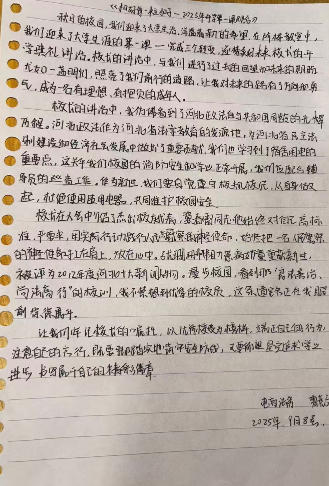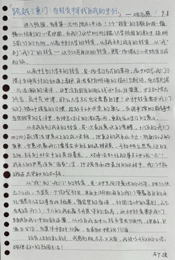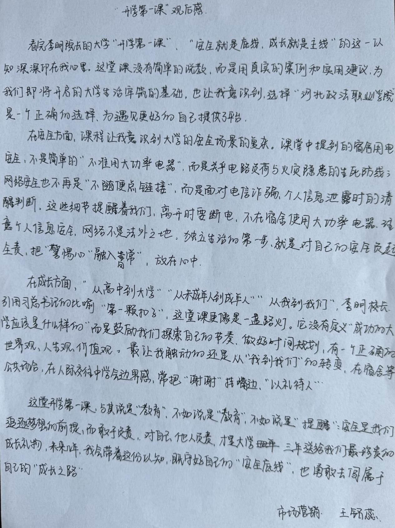 本次“开学第一课”主题教育活动成效显著,同学们在观后感中展现出感受力、思考力与表达力;同时,各班通过组织交流分享,有效促进了同学之间的思想碰撞与精神共鸣。下一步,我系将遴选优秀作品于系宣传栏集中展示,并组织主题班会对“三个转变”开展深入讨论,持续开展系列教育活动,多措并举助力新生实现成长蜕变。