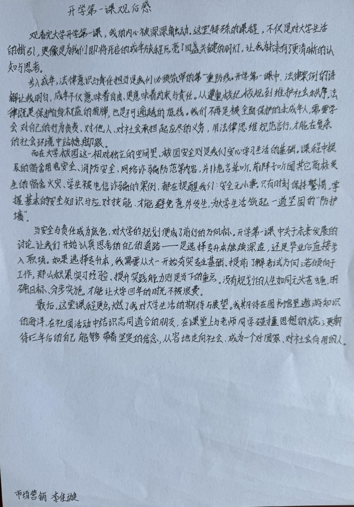 3.2025级市场营销专业1班李佳璇同学手写观后感节选