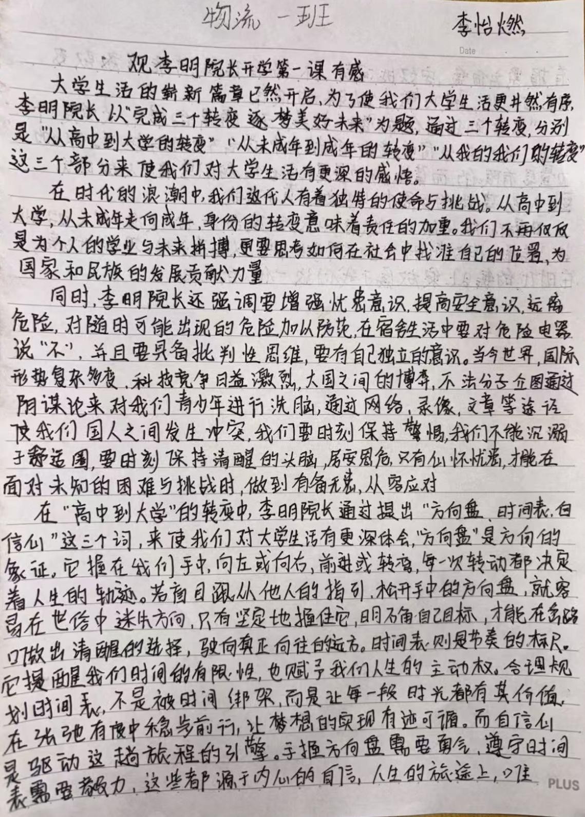 5.2025级现代物流管理专业1班李怡燃同学手写观后感节选