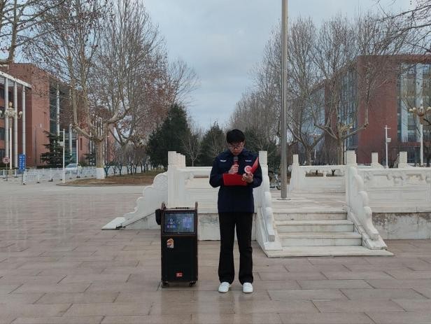 学生代表张扬进行国旗下发言。她结合大学生活,从课堂互助、宿舍关心、社区服务等身边小事切入,阐述了雷锋精神在当代的具体体现。她号召同学们从身边做起,将每一件小事做好,把志愿精神传承下去。