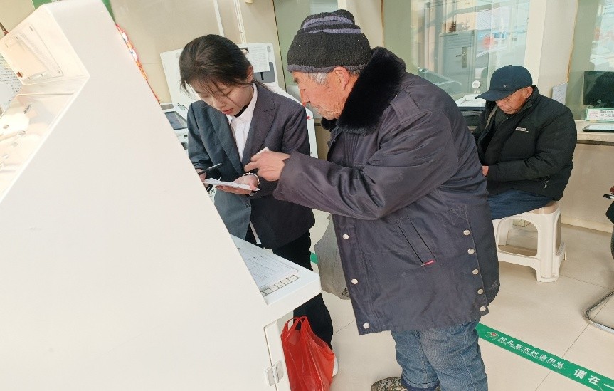 到河北省农村信用社做志愿便民服务,指导村民存取款