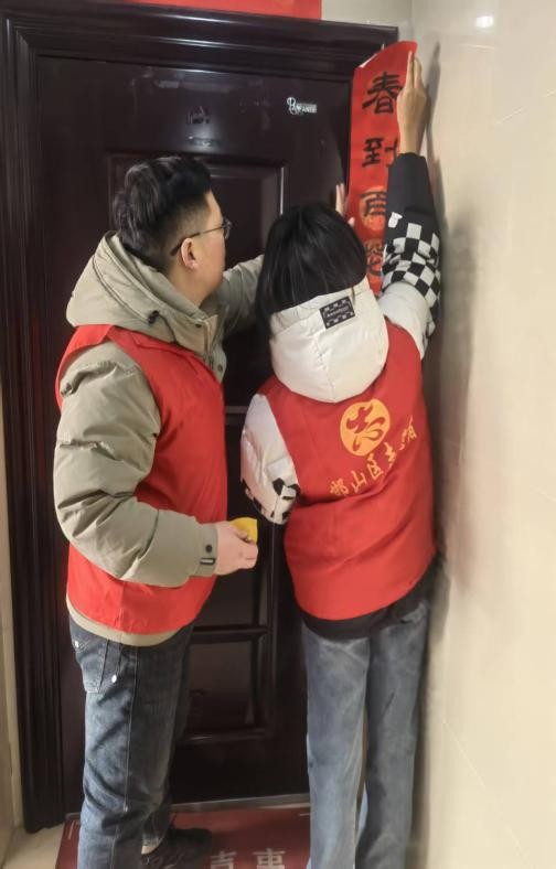 她与社区工作人员一起,通过入户走访、电话问询等多种方式,精准摸排辖区内独居、高龄老人的生活情况、身体状态与实际需求,为老人们精心挑选寓意吉祥、充满年味的春联与福字。走访过程中,她坐在老人身边促膝长谈,耐心倾听老人们的心声与回忆,细致询问老人的身体状况和生活难题,反复叮嘱老人注意冬季用火、用电、用气安全,用真诚的陪伴和贴心的问候,为老人们驱散孤单,送去节日的温暖与祝福。