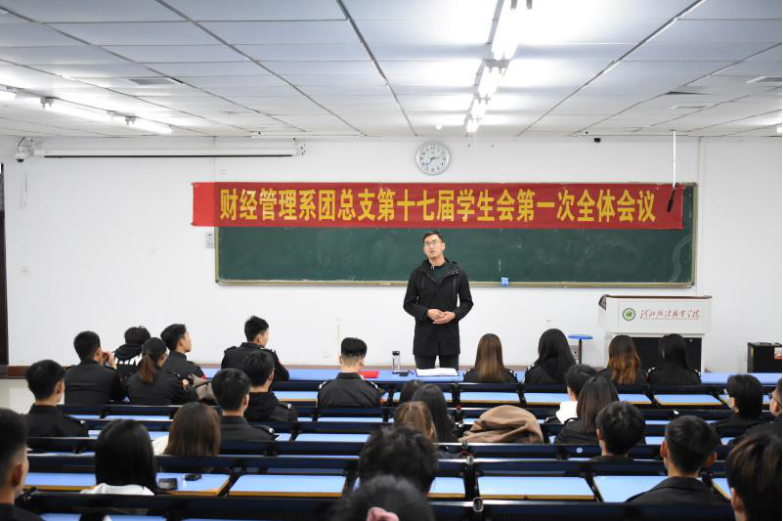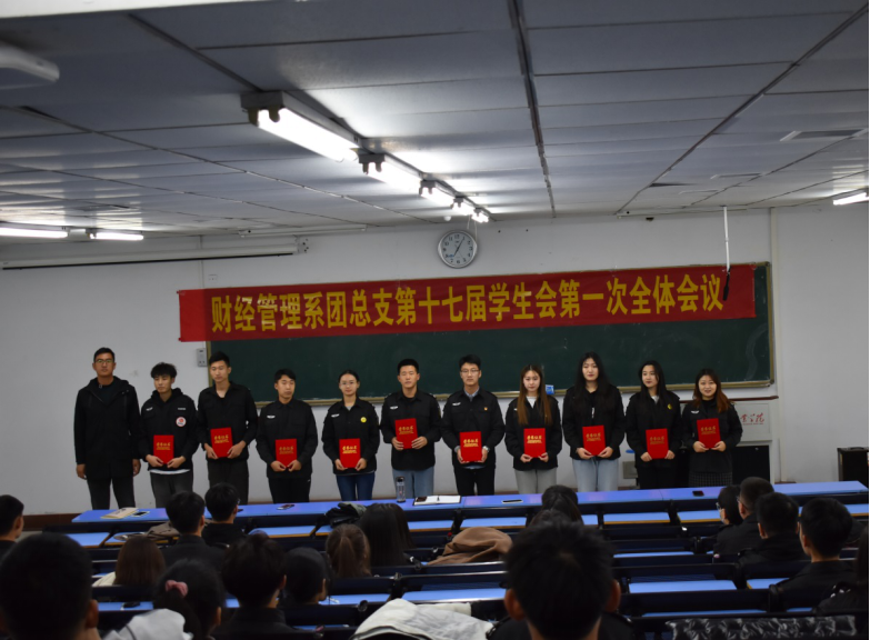 为了加强学生工作的顺利开展,财经管理系团总支于11月8日晚6:40,在校本部阶梯二十教室召开了第十七届学生会第一次全体会议。财经管理系团总支副书记李晓明、学生会全体成员参加了此次大会。本次大会共设四项议程。