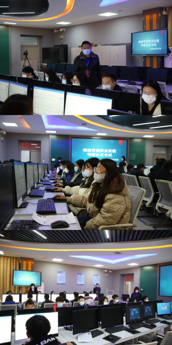 为保证本次“物流管理1+X职业技能等级证书”考核工作的顺利进行,系主任王亚龙积极协调各方资源全力保障。物流管理教研室张银霞、王红、牛晓惠老师组织学生进行《物流管理职业技能等级认证教材(职业基础)》和《物流管理职业技能等级认证教材(中级)》的学习,为学生搭建在线学习课程资源。以北京中物联物流采购培训中心模拟考试平台为参考,老师们不断为学生们讲解要点并纠正错题,努力让其熟悉考核流程和操作要点。考前两天,系领导、老师还带领学生们严格按照考试规定仔细进行了考场布置及设备调试,切实保障了考试过程的顺利进行。