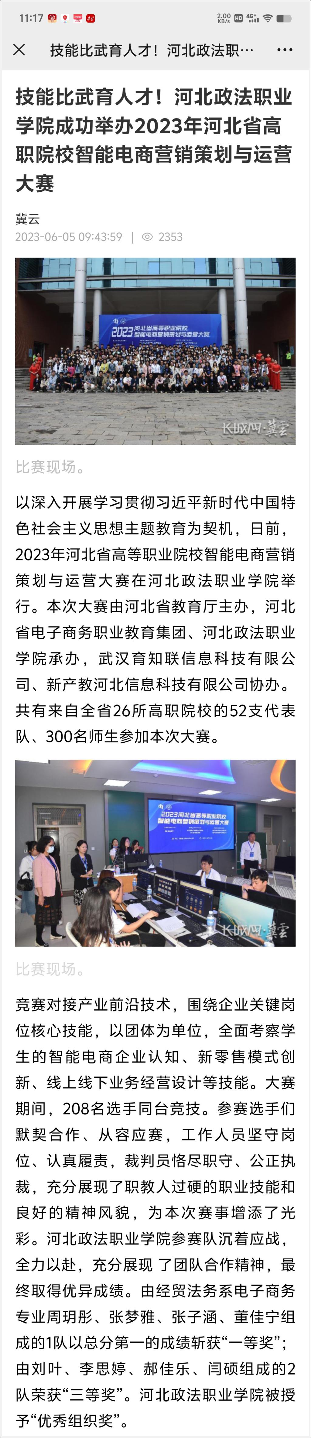 2023年河北省高等职业院校智能电商营销策划与运营大赛被长城新媒体报道