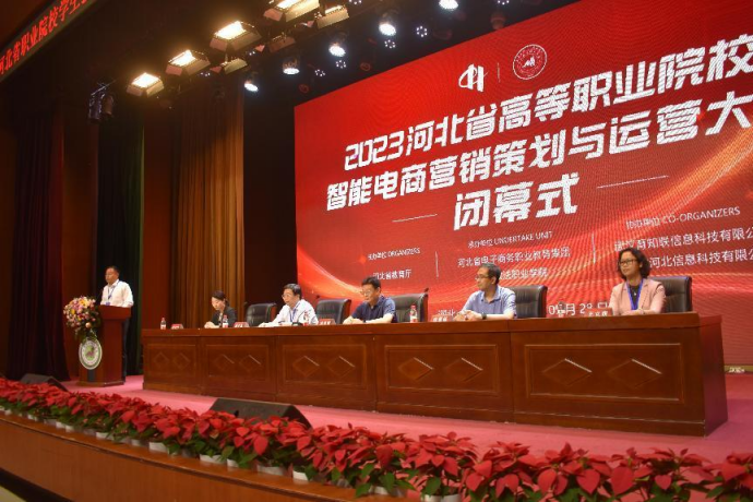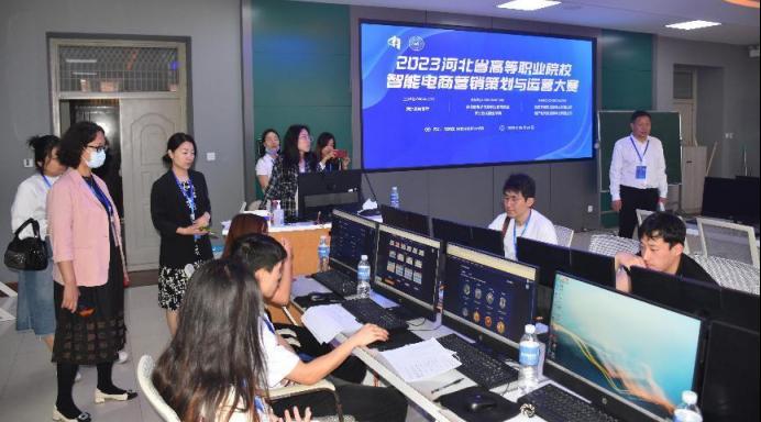 5月28日,2023年河北省高等职业院校智能电商营销策划与运营大赛在tyc33455cc太阳成集团隆重举行。本次大赛由河北省教育厅主办,河北省电子商务职业教育集团、tyc33455cc太阳成集团承办,武汉育知联信息科技有限公司、新产教河北信息科技有限公司协办。共有来自全省26所高职院校的52支代表队、300名师生参加本次大赛。