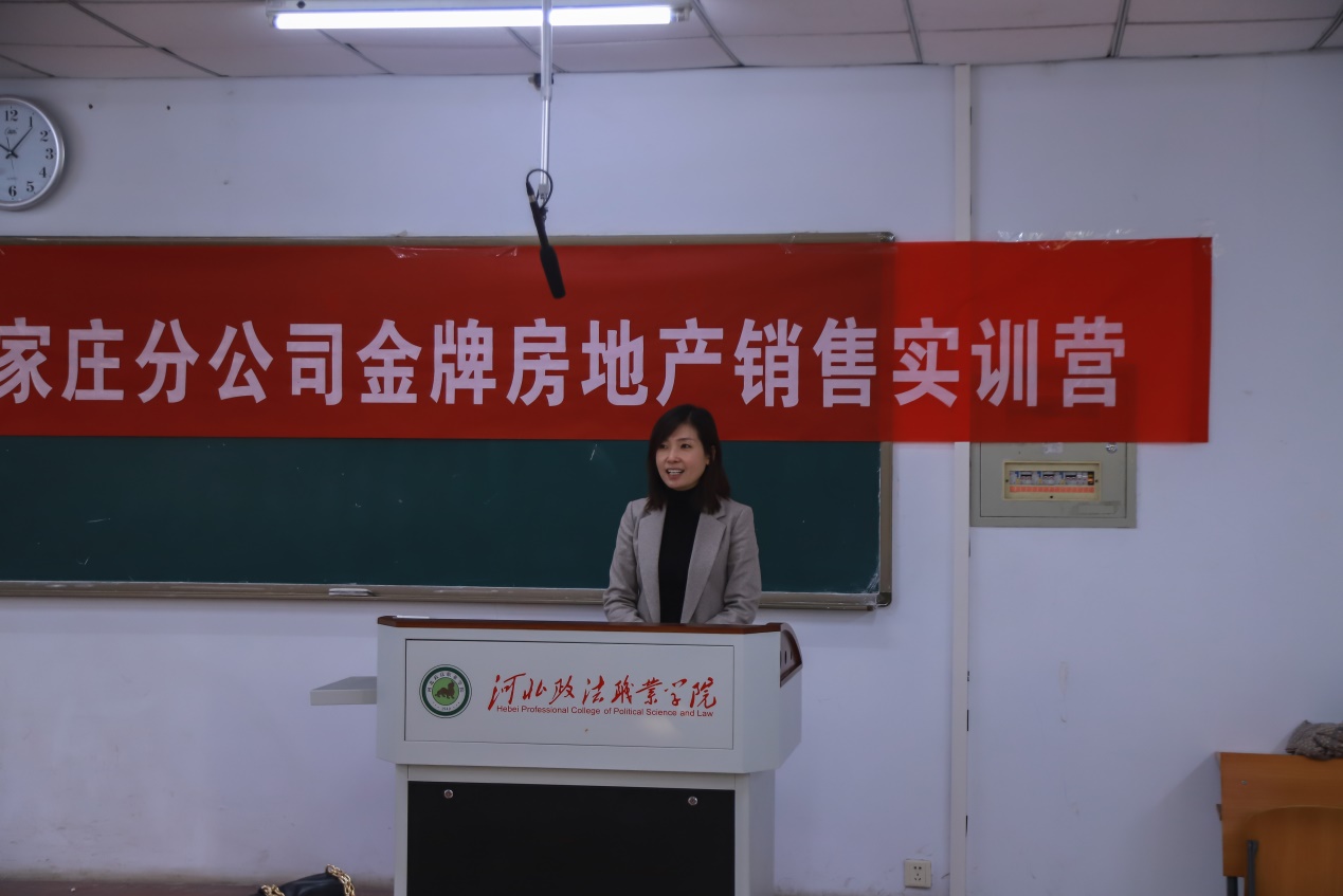 此次公司派出了新房和存量房两大业务板块的区域经理胡晓飞、王磊和在售项目销售经理张丽为同学们就新房、二手房的现状和发展趋势,以及销售中的流程技巧分别做了讲解和演示,将专业知识与具体的行业相结合,引发了同学们的极大兴趣。