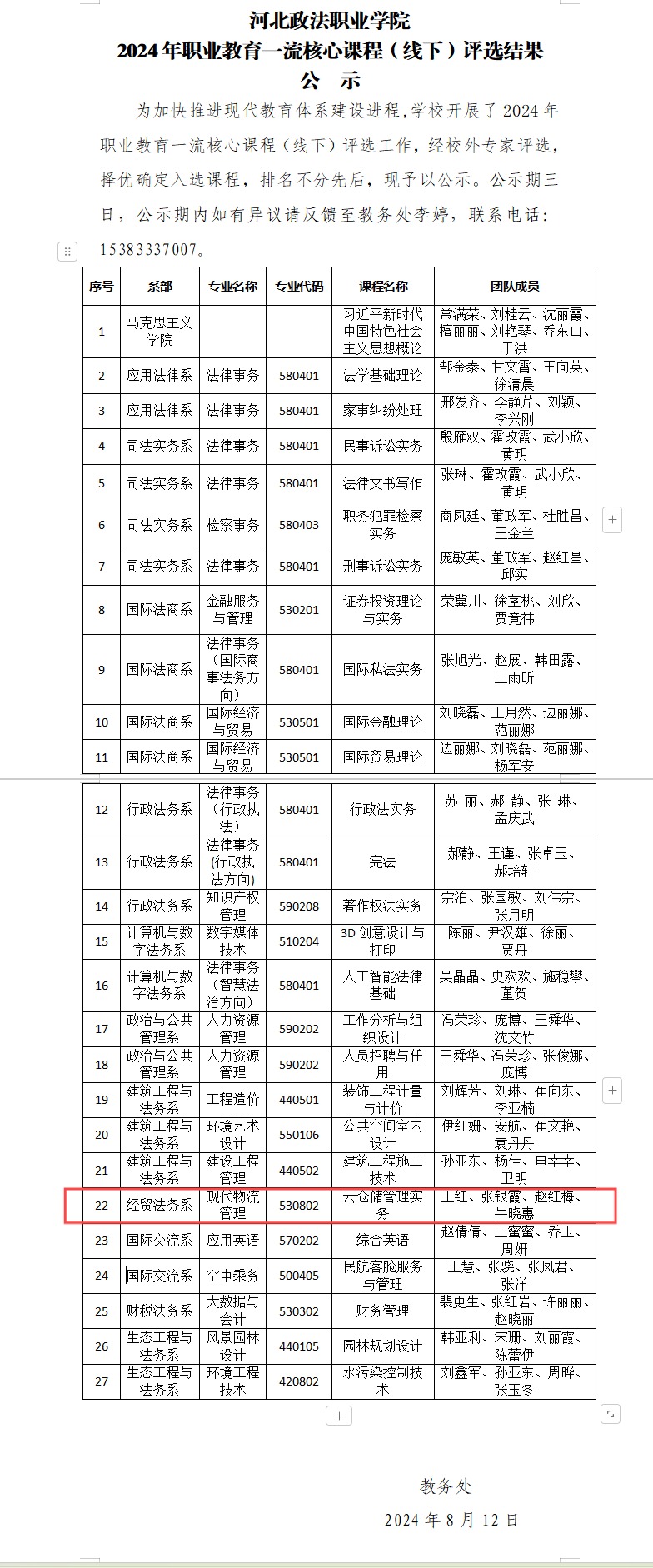2024年《现代运输运营实务》入选职业教育课程思政示范课、《云仓储管理实务》入选职业教育一流核心课程(线下)